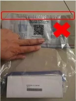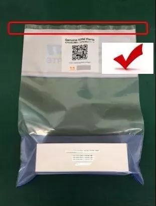 如下圖所示,純正品包裝袋最上方有一段透明封口區(qū)域,而那些企圖再利用川崎純正品包裝袋的不法商家,會(huì)將透明塑封口剪去后,重新塑封到白色區(qū)域,若沒(méi)有認(rèn)真觀察是無(wú)法看出。