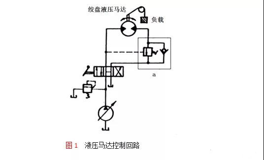 由于受被起吊重物的負(fù)載、外界干擾及換向沖擊壓力等的影響,1所示的液壓馬達(dá)在加入a處的液控順序閥前常產(chǎn)生超速(超限)轉(zhuǎn)動的現(xiàn)象。
