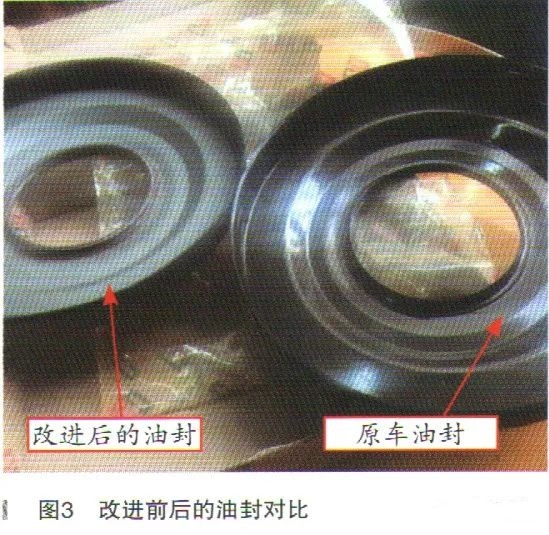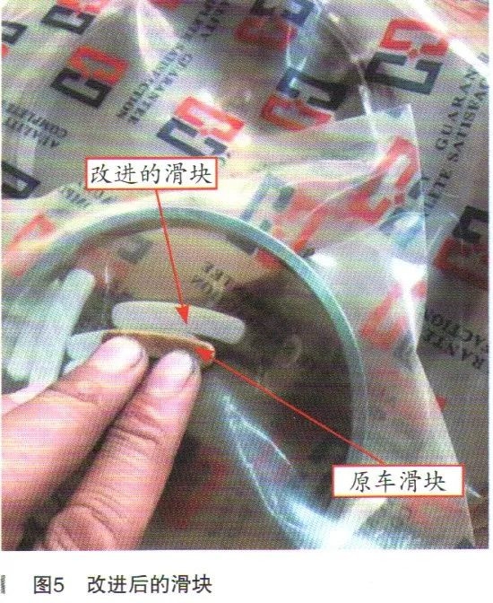 查閱相關(guān)資料,原來(lái)這款變速器有技術(shù)通報(bào),說(shuō)的就是剛才我們檢查的問(wèn)題,原來(lái)這一塊兒有改進(jìn)的配件。找到配件商,從配件商處拿回來(lái)一套進(jìn)行對(duì)比,發(fā)現(xiàn)有三處進(jìn)行了改進(jìn),如圖3所示。