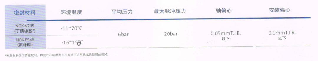 NOK通過長年開發(fā)的密封技術與獨特的設計開發(fā)能力,使得該款油封的密封性及耐壓性更加優(yōu)越。使得能承受2MPa瞬間壓力的密封新工況!