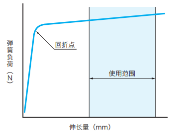 彈簧的作用是提高密封唇在軸上的壓緊力,是保持此壓緊力所需的部件。油封所使用的彈簧具有所示特性。因此,微小的伸長就可以得到必要的負(fù)荷。由可知,在一定伸長限度下,彈簧負(fù)荷就沒有太大變化。另外,為了使彈簧在的使用范圍內(nèi)發(fā)揮功能,設(shè)定長度時考慮了適當(dāng)?shù)纳扉L率。