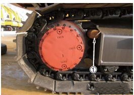 把銷①放在鏈輪和履帶支架間確保鎖定行走。