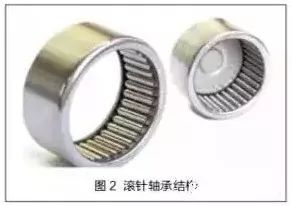 位于傳動軸上端的滾針軸承,其僅通過泄漏液壓油進(jìn)行潤滑。由于該部位循環(huán)的液壓油量非常少,造成該軸承潤滑不良,其內(nèi)部的污染物不能及時排出。在回轉(zhuǎn)馬達(dá)高速旋轉(zhuǎn)產(chǎn)生的高溫作用下,滾針軸承與污染物之間產(chǎn)生干摩擦,加劇了其磨損。滾針軸承結(jié)構(gòu)如圖2所示。