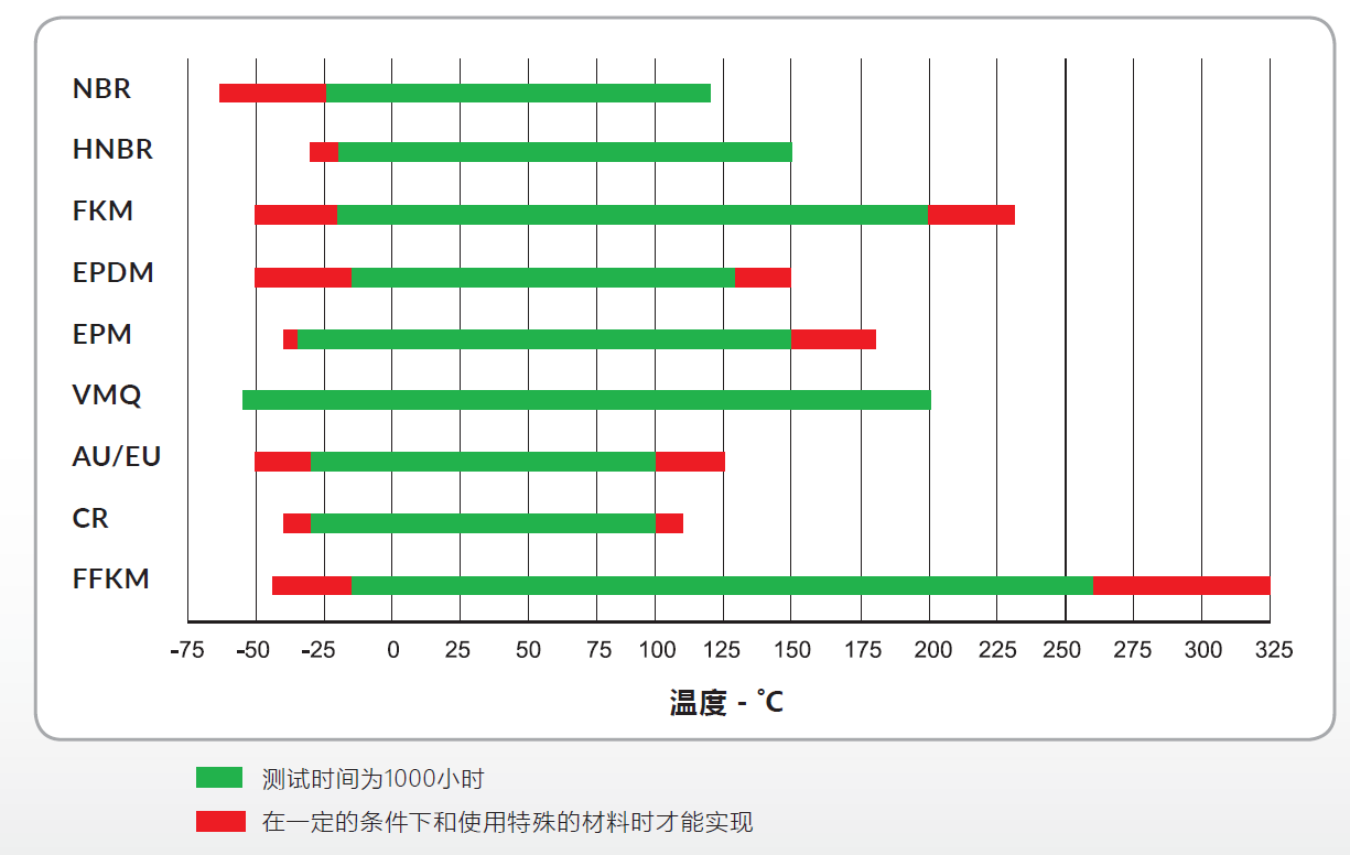 一般O型圈可以在一個很寬的溫度范圍內(nèi)良好的工作。但這個溫度范圍是有限的,我們最關(guān)注溫度的上限值和下限值。