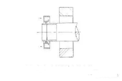軸上帶有螺紋、溝槽、花鍵時,使用圓錐形軸肩裝配骨架油封密封件無效,而需要用專用的裝配工具來保護(hù)骨架油封密封件唇部,即在螺紋、溝槽、花鍵處套一保護(hù)套,避免骨架油封密封件唇部被軸上的尖角、螺紋、溝槽、花鍵等損傷,如圖所示。