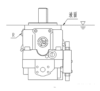 ◆當(dāng)最低油位等于或高于泵安裝法蘭區(qū)域時:油口“T1”,“T2”和“R”打開(請參見圖2)。