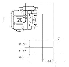 軸向柱塞泵在油箱內(nèi)安裝,低于油箱的最低油位。軸向柱塞泵完全在液壓流體下面。