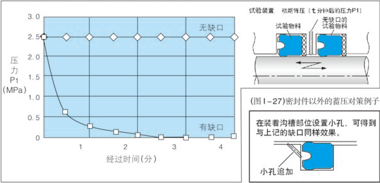 為此,NOK公司針對(duì)性的通過大數(shù)據(jù)實(shí)驗(yàn),來對(duì)比了有無缺口的所影響背壓泄露性能的差別。(NOK2010版密封件選型書P231)