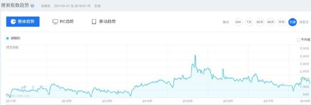 以裝載機作為關(guān)鍵詞進(jìn)行百度指數(shù)搜索,可以看出從2011年至今,用戶對裝載機的關(guān)注度在逐漸提升,并且用戶移動化的趨勢逐漸明顯。