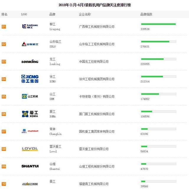 通過上半年裝載機用戶對品牌的關(guān)注排名榜看,以柳工、臨工、龍工三大工第一梯隊的鐵三角陣營沒有發(fā)生改變,依然占據(jù)裝載機品牌關(guān)注榜前三,通過用戶關(guān)注度也在一定程度上反映出品牌的銷售情況。(如下品牌關(guān)注度僅供參考)