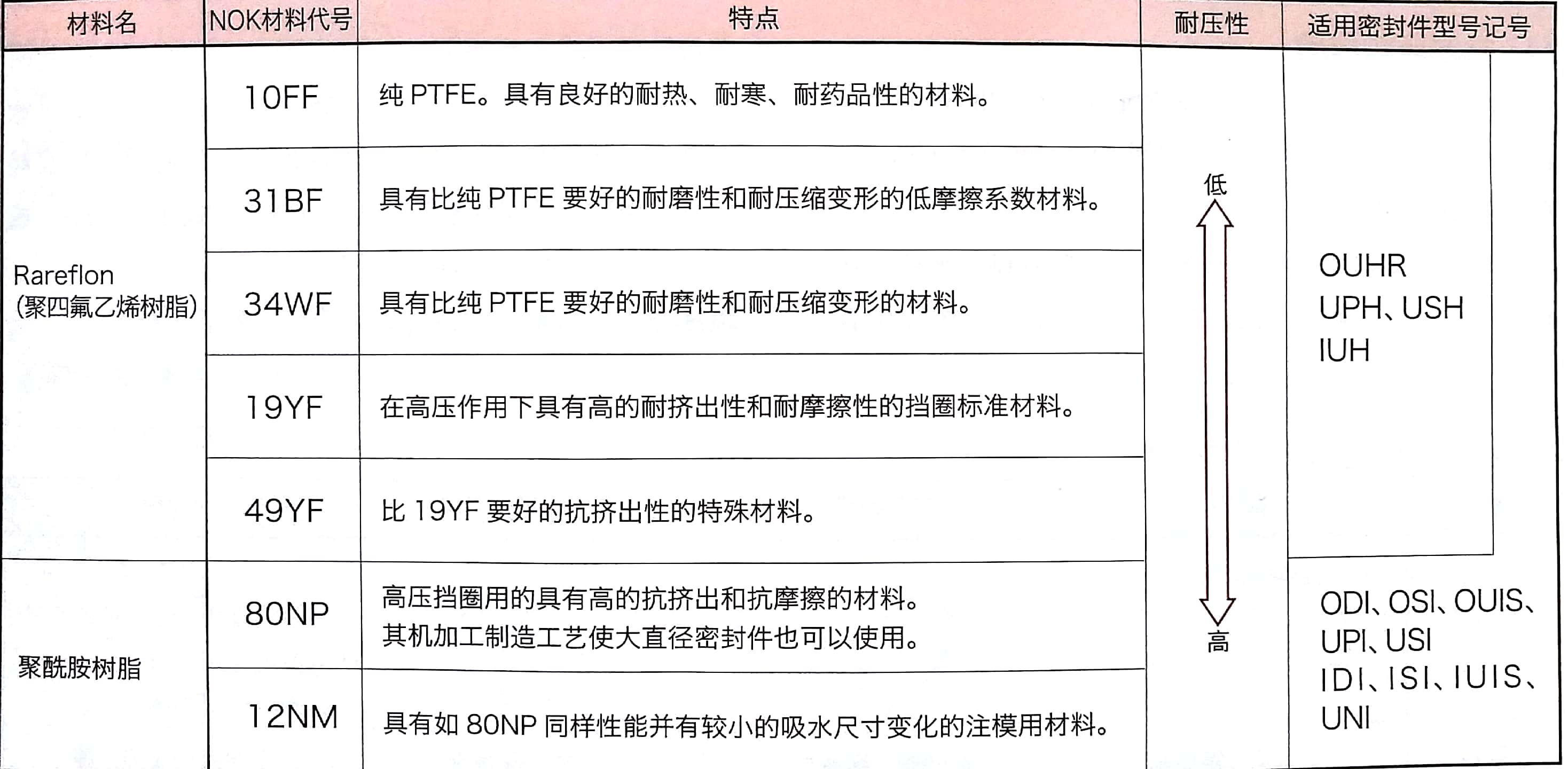 根據(jù)上表可以看出ODI、OSI、OUIS、UPI、USI、IDI、ISI、IUIS、UNI有配套的聚四氟乙烯樹脂和聚酰胺樹脂擋圈可供選擇。