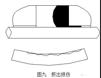 9.橡膠O型圈的擠出損壞(圖九)由于壓力作用及介質(zhì)的侵蝕,使O型橡膠圈變軟,而擠入小間隙中,又由于應(yīng)力集中使密封圈出現(xiàn)斷裂或剝落。