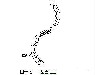 17O型圈扭曲(圖十七)橡膠O型圈的扭曲現(xiàn)象大多發(fā)生在密封距形安裝槽的結(jié)構(gòu)上,當O型圈的斷面粗細不勻,或組合軸孔表面不光潔以及壓縮率過大時,都會引起O型圈扭曲。