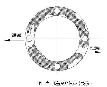 19.壓蓋的剛性較差,將會出現(xiàn)(圖十九)所示的情況,即靜密封墊片損壞而產(chǎn)生泄漏。