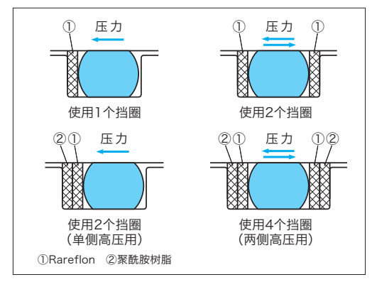 在壓力或間隙都超出極限時,建議使用擋圈。從兩個方向施加壓力時,將擋圈安裝于