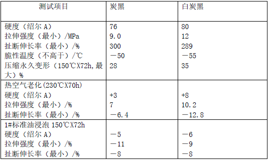 以氟硅橡膠為例:采用相同的生膠和硫化系統(tǒng),但采用不同的炭黑,就有不同的性能。