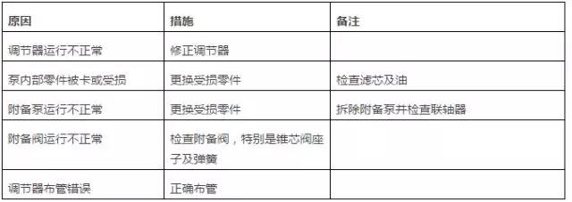 內(nèi)油流速過低且無輸出壓力故障排除見下表